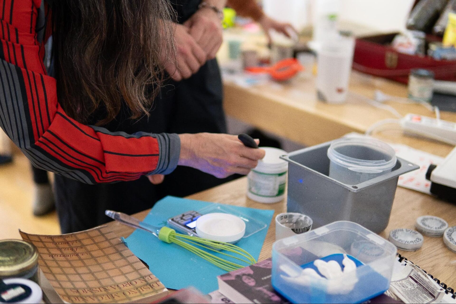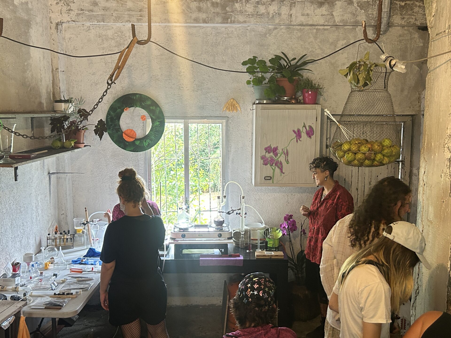 In a second room, a temporary lab was set up with simple kitchen materials and biomaterials collected in the days before. A big table was prepared to welcome participants and foster creative collaboration.