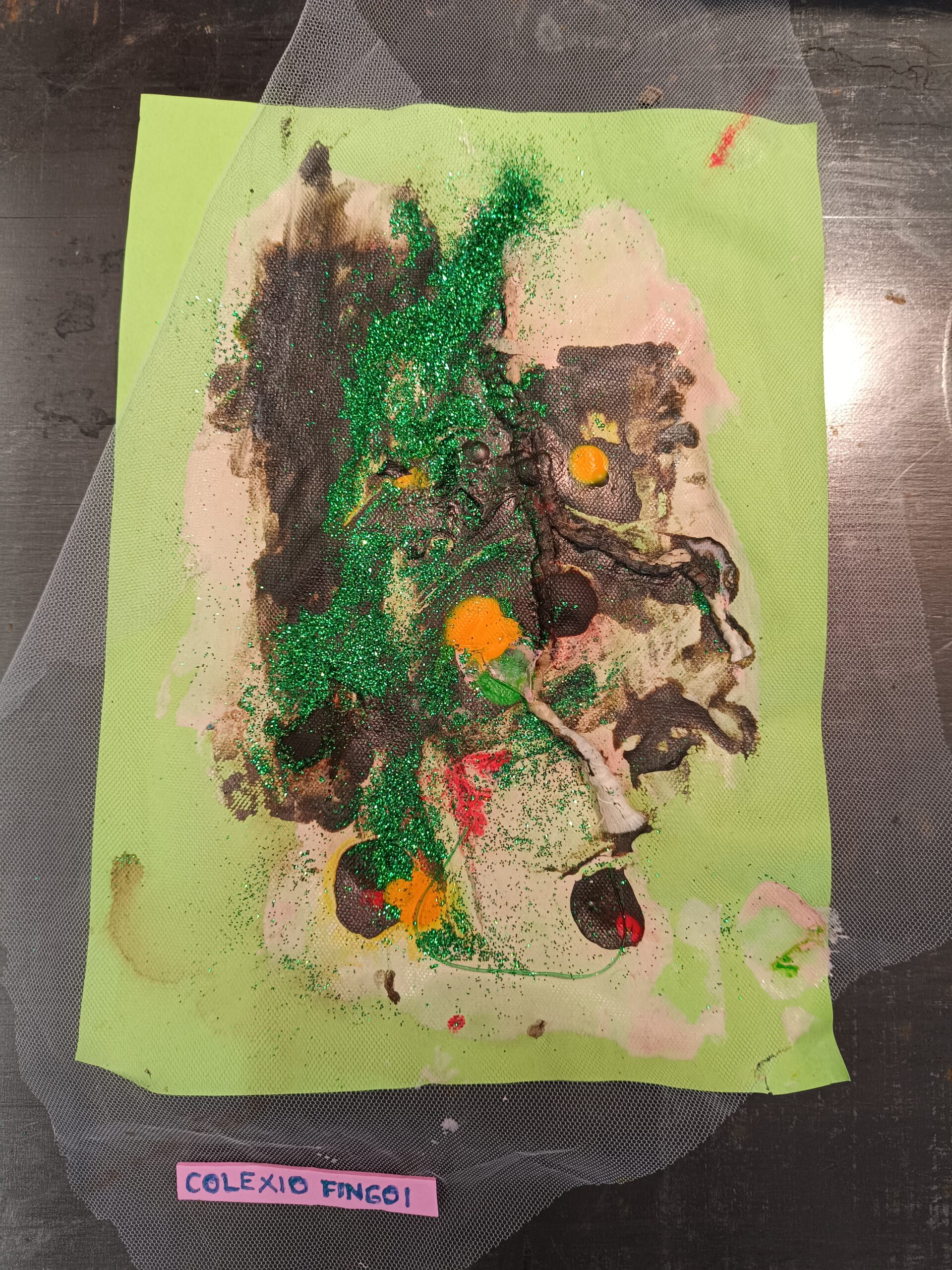 We then moved on to Workshop 01 on Biomaterials, led by the creator Tina Cortón from Lugo, where we were able to get in touch with her development of BioMaterial and the youngsters, with Tina’s help, made two canvases and other experiments that were tested in moulds and textures.